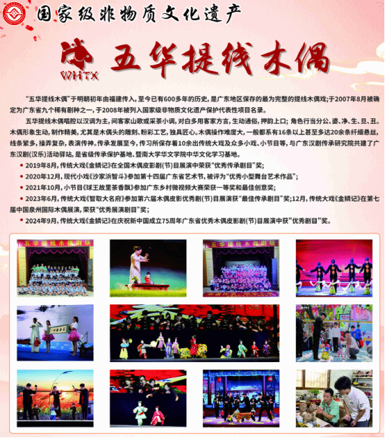 为了推进学校美育工作发展,提高学生的审美和艺术素养,促进学生德智体美劳全面发展;推进国家非物质文化遗产系统性保护,提升大学生对传统文化的认知与热爱,嘉应学院与五华县提线木偶传习所(五华县华偶演艺有限公司)共同举办“非遗进校园——五华提线木偶进嘉园”专场演出,让大学生能够近距离感受中华优秀传统文化的独特魅力。
